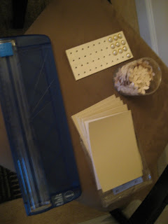 I tried cutting the paper myself and soon realized that straight lines where not in my future. So I purchase a paper cutter from Staples. You can see it below. It was only $12.00 and it saved me SOOO much time and hassle! While at Micheal's I also purchased a few embellishments. You can see below the pearls and flowers. I will be using them to give my invites a little more of that 'wow factor'. The Flowers were about $5.00 and the pearls ran around $3.00 a sheet. I got just enough for all my invites!